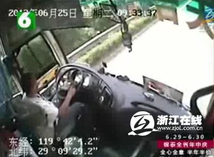 浙江金华高速交警发来的大客车行车记录仪记录下来的视频显示,大客车一路行驶平稳,但在9时33分,驾驶员顺手拿起放在驾驶室旁边的手机看一眼。就在此时避让不及,撞上了违停的出租车,发生悲剧。