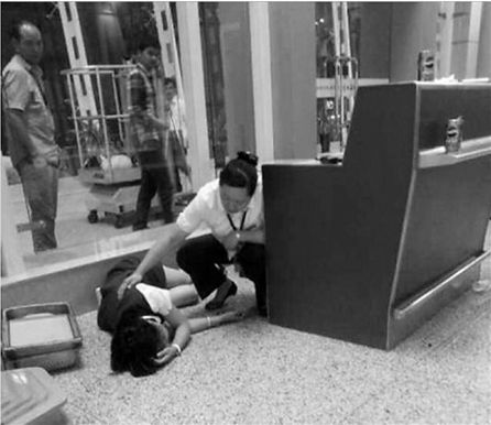 这就是网上流传的地勤受伤躺倒在地的图片。
