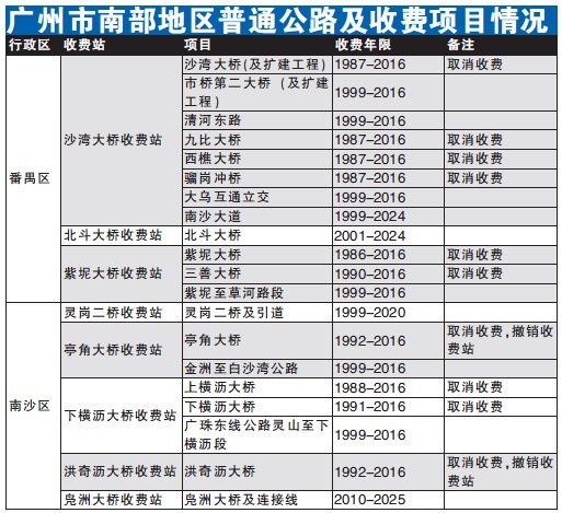 广州市交委公布番禺南沙八个收费项目情况