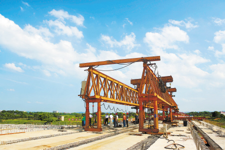 由于黄兴大道南延线下穿沪昆铁路客运专线浏阳河特大桥。为保障客运专线的运行安全,道路下穿工程采用钢筋混凝土整体U型槽分两幅下穿通过,既起到防撞作用,又可以减少开挖深度,同时降低车辆行驶中对周围桥墩的影响。目前U型槽已完成过半,预计下月完工。
