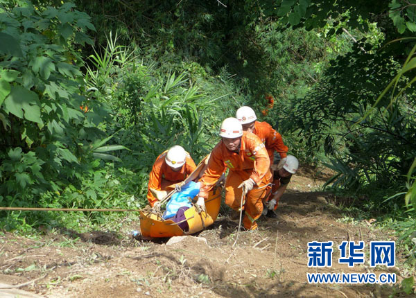 7月14日,救援人员在事故现场进行救援。当日12时40分左右,一辆旅游大巴在云南西双版纳州勐景路(勐养至景洪)发生重大交通事故,大巴车发生侧翻并坠入公路左侧山谷,造成8人死亡、19人受伤。据初步分析,该事故与当地雨大路滑有关。新华社发(段金华 摄)