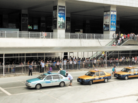 中午12时许,等车区域内的人更多了。“刚出站就看到了指示牌,然后就到这里来了。”市民杨先生说,以前坐出租车要到公交车坪附近去,到负二层乘车是最近才改的。“以前出差回来打车就很难,现在虽然换了地方,但打车依旧不容易。”