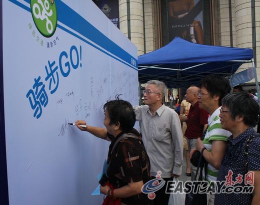 上海无车日活动今天举行,上海市民在绿色出行承诺墙上,写下了自己的名字