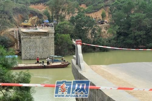 位于惠东县白盆珠镇的省道S356线旱坑大桥7日晚21时30分左右发生惊险一幕:94米长的桥面有70米发生坍塌,一辆面包车刹车不及坠入约20米深的水库,所幸车上2名司乘人员获救,无生命危险。记者今日(8日)在现场看到,当地公路、交警等相关部门正在现场调查原因并制定临时通车方案。