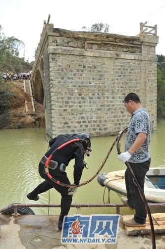 从广州过来的潜水员潜入近20米深的水底了解情况。南方日报记者 梁维春 摄