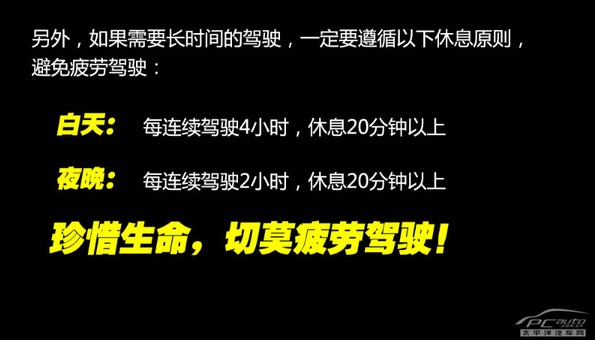 如果需要长途持续驾驶的话,白天每隔4小时、晚上每隔2小时就要休息20,这是有效避免疲劳驾驶最有效的方法。