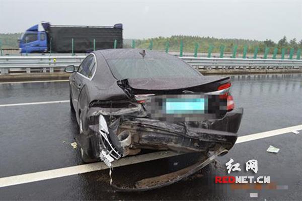 这起事故导致车体后半部分严重变形,车损约5万元,驾驶人谢某头部被擦伤。