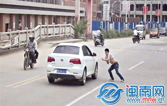 原标题:晋江一小伙4次飞身撞车自残 与父亲吵架求关心东南网6月24日讯(海峡都市报闽南版记者 林天真 通讯员 蔡忠东 庄诗琪 郑赞 彬文/图)他裸露上身,突然从路边冲向路中,先后4次飞身撞向路过的小车。接着,他又两次伸出脚,故意让车辆碾压。昨日上午8点47分,22岁的重庆人杨某,在晋江安平汽车站门口,上演幕幕惊情,直至右脚被碾压骨折后方休。