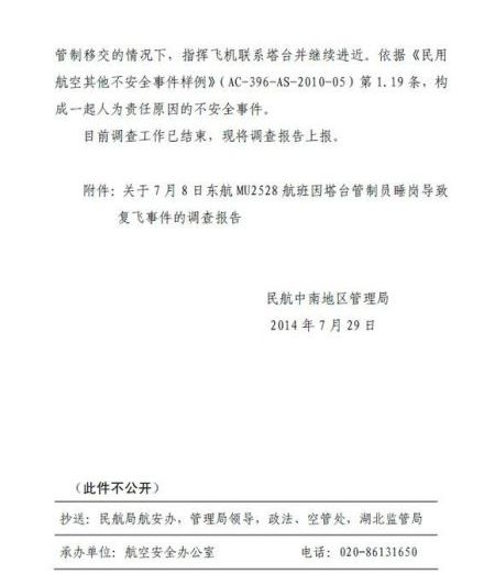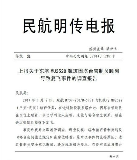 据中国日报网报道 东航MU2528航班因塔台管制员睡岗导致复飞7月8日,东航MU2528(三亚—武汉),在武汉进近阶段联系塔台时,因塔台管制员在岗位上睡着,多次呼叫无人应答,未能与塔台建立联系,后在进近管制员指挥下复飞,经进近指挥向塔台电话联系后,此过程复飞12分钟之久安全落地。来源:中国日报网