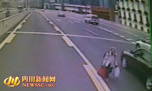 太婆误入二环路高架桥。图据监控