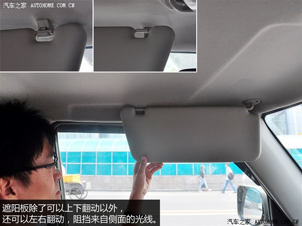 另外,当我们侧面面对阳光的时候,也可以将遮阳板的一端旋转至侧面来遮挡两侧的阳光。