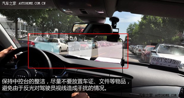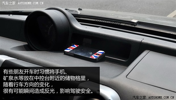 很多车主喜欢将手机、矿泉水等放在中控台上的储物格中,但是行驶中有可能因为行车角度的变化造成瞬间反光,使得我们的视线受到影响。