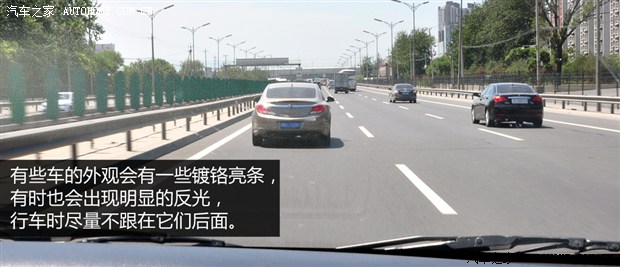 如今很多车辆车身上会有很多镀铬亮条,虽然看上去感觉不错,但是阳光下这些装饰条很有可能发生反光,若前车反光明显,我们最好不要跟在它们后面。
