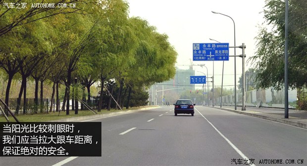 上文中提到这些方法都是尽量减小光线对我们的影响,然而刺眼的阳光始终存在,通过各种各样的措施也仅仅是减弱对我们的影响,因此这种环境下驾车一定要拉开跟车距离,给自己多留一些制动空间。