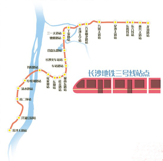 3号线计划2018年底通车试运营,与2号线在长沙火车站站换乘,与1号线在侯家塘站换乘。