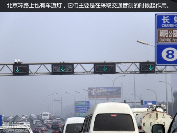 在北京环路上的这些车道灯平时都是绿色箭头,但在采取交通管制的时候,就要注意观察车道上方的车道信号灯是否为禁止状态,如果为红色叉子,就要主动腾出车道。