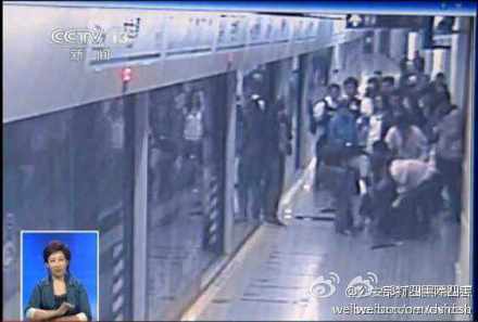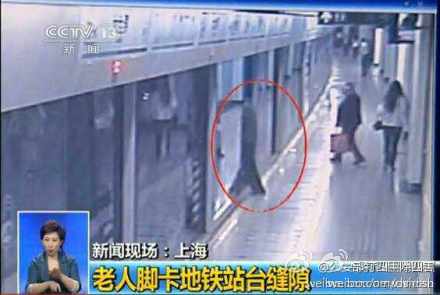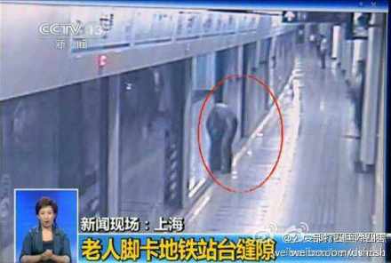 上海:老人脚卡地铁站台缝隙 众人施救成功