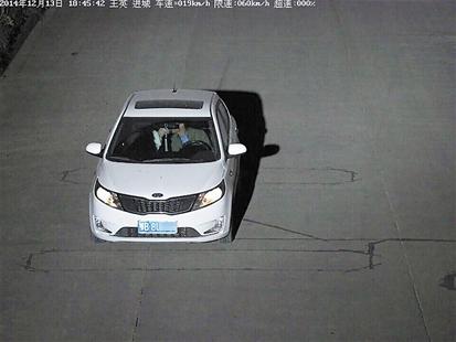 据介绍,一张拍摄时间是13日下午6时45分,一辆白色起亚轿车在通过王英卡口时,车辆停在路中央,驾驶员与坐在副驾驶座上的女子热情接吻。