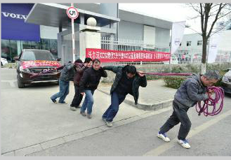 华商报讯(记者 景冀)昨日下午3时许,在西安市浐灞汽车主题公园天润沃尔沃4S店门前,5名壮汉拽着一条粗绳,拖着一辆崭新的沃尔沃XC60越野车“游街”,这是怎么回事?