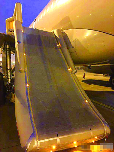 1月12日晚,乘客擅自打开紧急出口,应急滑梯包被释放。网友图