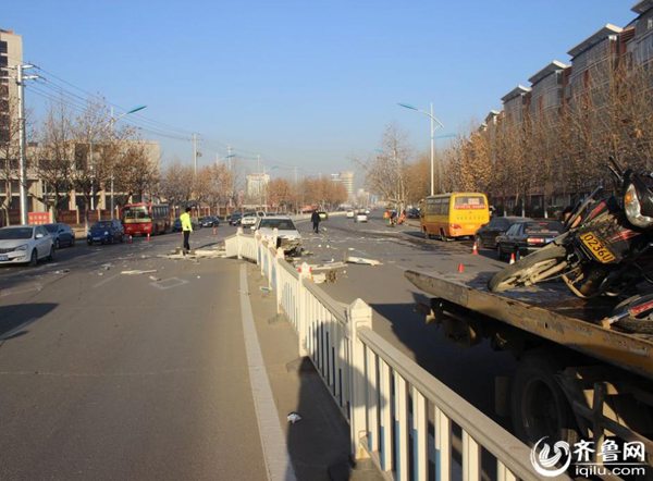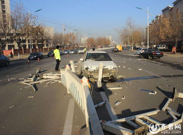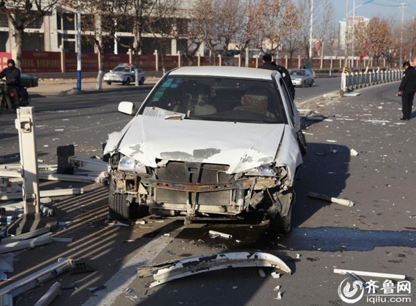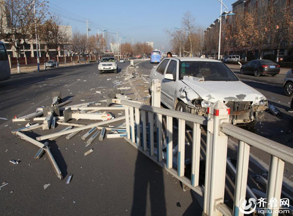近日,临沂费县县城城东鲁公路段,一由西向东行驶白色奇瑞轿车突然失控撞向路中间护栏,短短三秒钟时间,30余米护栏被撞粉碎,现场一片狼藉。由于当时该路段无其它车辆与行人,所幸未造成人员伤亡。据了解,肇事车辆车主为一名女司机,交警在现场调查时,肇事女司机说当时旁边有车,她方向晃了一下,紧接着她就刹了一下车,结果就撞到了护栏上,随后报警。但是,民警从事发时的监控视频中并没有看到肇事奇瑞轿车在出事前两侧有车辆经过,而且直到撞出去二三十米远后,轿车才停了下来。图片来源:齐鲁网