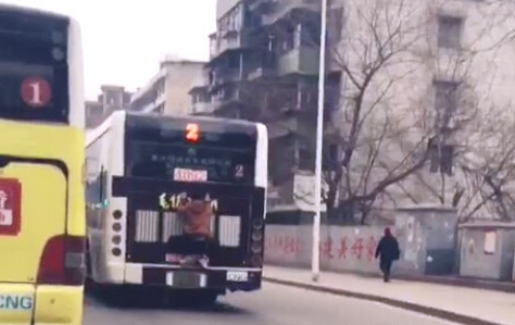 10日上午,网友@成驰洋TK通过微博发布了一段视频,称他在开车上班的路上,看见一男子突然扒上前面的2路公交车,并一路扒车前行,后来他妻子拍下了这段视频。