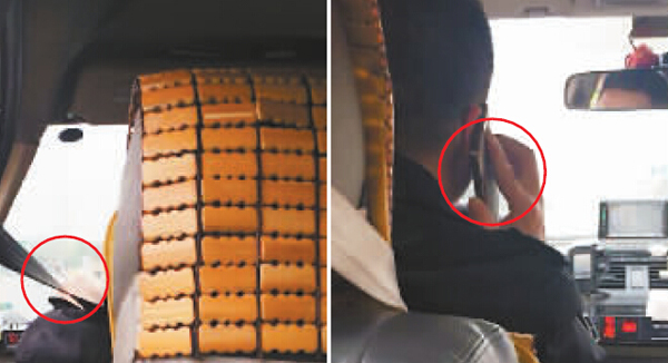 龙婆婆拍下了当时司机抽烟打电话的样子。(受访者供图)
