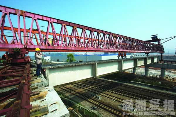 红网长沙3月27日讯(滚动新闻记者 斯茅庚 通讯员 王莹)3月25日上午9点50分,长沙汤家湖路跨铁路立交桥首梁顺利架设完毕。预计今年4月底完成上跨京广线架设,10月实现全桥主体贯通,年底通车。作为这个区域东西向主干道的控制性节点工程,这座桥建成后将为长沙城北发展赢得更大的空间。
