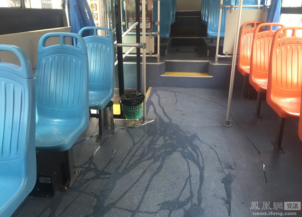据司机反映,这名黑人男青年最初是在座位上滑倒,几位老人将其扶稳后,这名男子居然在公交车厢里撒尿。司机随即停车让乘客下车并且报警。