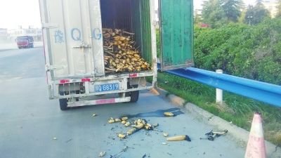 “这是种(莲藕),不能踩。”司机白某说,“当时,我在一旁大声提醒。”“绿色通道,卸你的货也应该!”验货的人说着,上车就往车厢里的种藕堆上爬,白某急忙往下拽他。这时,藕堆突然坍塌了。白某说:“种莲藕,藕节断裂无数,至少上百斤。”