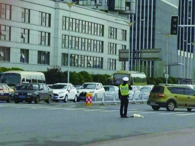 贺星亮在路中间执勤,倒在地上的小狗距他不到10米,他穿过车流去查看小狗的情况。“它倒在地上不能动弹,伤势比较重,尾部有被辗压的痕迹,但还活着,我想着这也是一条生命,能救一定要救。”担心路过小车再次碾压受伤小狗,贺星亮当即用身体挡在小狗身前,拨打了114查询附近宠物医院的电话,并请求支援。这温馨的一幕,恰巧被路过的车主拍下。但遗憾的是,3分钟后,受伤的小狗就奄奄一息了。最终小狗因伤势过重死亡。