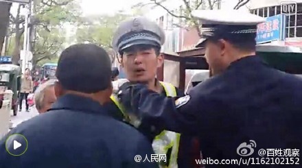 【“三轮大爷”非法载客耍赖 气哭小鲜肉协警】12日,河南信阳一路口,一76岁大爷开机动三轮非法停车载客,浉河勤务大队四一路中队交警对其查扣。“三轮大爷”抓着协警的衣领不松,骂个不停,该协警被当场气哭。最后,交警只能放行,“三轮大爷”突然下跪感谢。
