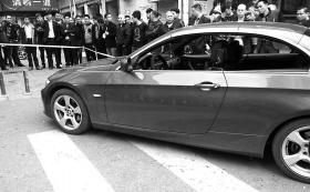 4月21日下午3点半左右,现场停放着一辆红色宝马车,车子旁的地面有不少血迹。《长株潭报》记者 王婕 摄