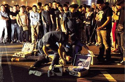 就在当晚11点,郑州晚报记者看到在CBD商务内环与西一街东100米运河桥上,一辆急救车停在路边闪着顶灯,3名医护人员正对一名男孩做心肺复苏,旁边几名男孩歇斯底里地喊道:“醒了,醒了,别在这儿躺了。”“洞子,你听到没?洞子,醒了,别睡了,别睡了!”……
