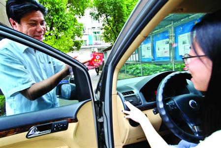 物业公司向符合要求的车主发放停车照顾卡/晨报记者 竺钢