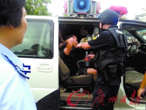 司机于是把车停下来,借着拿钱交给男子的瞬间,挣扎着冲出了汽车,并迅速反锁了车门,然后跑到保安亭报警。