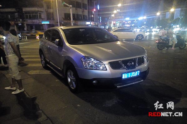 红网长沙6月17日讯(时刻新闻实习生 刘颂辉 见习记者 潘锦)今天晚上8点50分,长沙市雨花区砂子塘路口,一辆银白色湘A牌照的尼桑越野车司机涉嫌酒驾。在被交警检查时,司机一脚踩上油门,准备冲开交警逃跑,差点撞上四名交警。晚上9点07分,时刻新闻记者赶到现场,涉事车主被强制拉进附近的交警执法车里,进行酒精测试,尼桑车停在路口处,车里没有人,附近停有两台交警执法车,并有不少人围观。“肯定喝了酒,身上有很重的味道。”执法车外一名交警称。