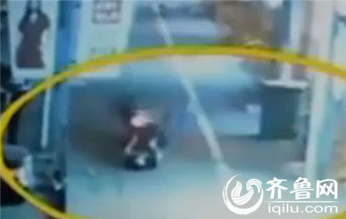 监控显示,王先生撞到钢丝绳后后脑勺着地,摔在了地上。(视频截图)