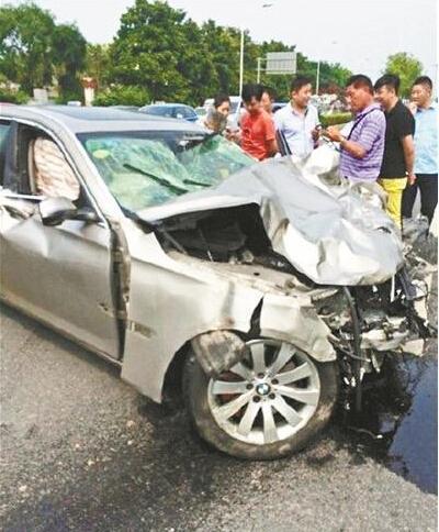 6月20日下午13点52分左右,在南京市的一个十字路口发生惨祸,一辆白色宝马轿车高速直行闯红灯,拦腰撞上前方正常转弯的小轿车,被撞小轿车粉碎散落,车上的两名年轻人被抛出车外,当场死亡。事发后,肇事车主逃离现场。