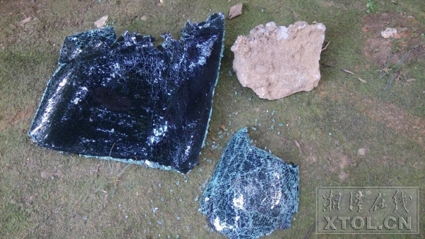 吴先生带我们来到他当晚停车的位置,指着地面已全然碎成渣、全靠贴膜维持形状的玻璃告诉我们,这就是他被砸的车玻璃窗。他捡起一块不规则的水泥块说,这就是从他车子里捡到的“作案工具”。“当时那个人应该是非常用力地砸玻璃窗,才使得水泥块掉到了左后座,而且至少是砸了两次以上,才能把玻璃砸穿。”