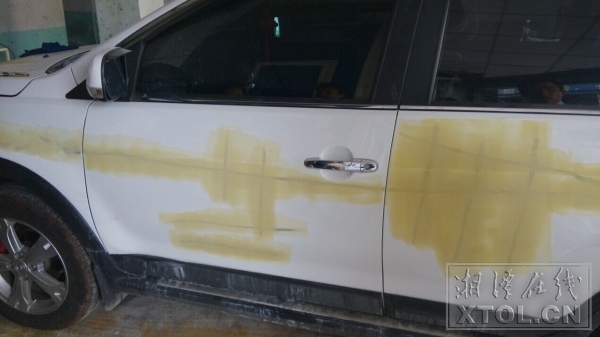 由于车子并没有玻璃险和划痕险,修车的费用得由吴先生自己来出。24日下午,我们到修车处看到了吴先生满是伤痕的车。修理人员小姚说,现在已经把划痕刮平了,“这些划痕很深,已经划到铁皮上了,应该是用非常锋利的利器划的。”