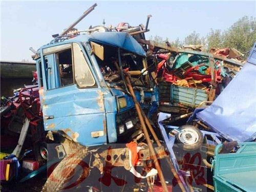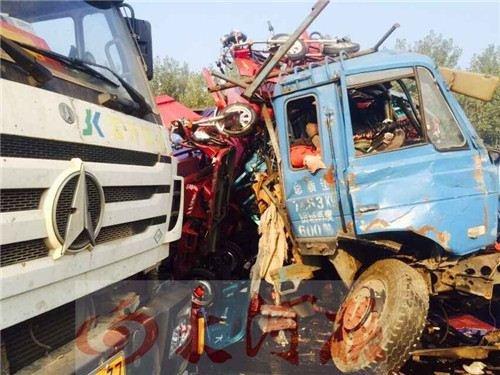 “我们是从郑州来的,要到东北去。车上装的是零单。”货车司机曹师傅告诉记者,他是昨天晚上8点多出发的,11点多到行驶到这里时,发现前面有一辆拉收割机的货车停在路边,他超车时和前面的一辆车发生了追尾。