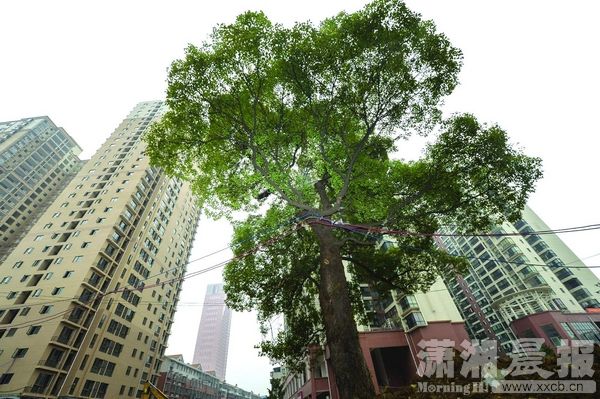 “这么老的树城里少见了,希望能保护好。”70岁的居民王松庭说,在他小时候这棵樟树就存在了,“当时(樟树)比现在小很多,但一个人也抱不过来。”