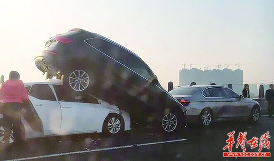 时刻新闻 —分享— @新希望童鞋:京港澳高速雨花出口往北约一公里北往南方向,发生一起多车追尾事故,其中一辆车直接爬到了另一辆车的车顶!现场这个“叠罗汉”的造型,见了的人都觉得匪夷所思。@Hi都市报 [核实] @新希望童鞋姓金,2月17日8点半左右,金先生途经京港澳高速雨花出口往北路段时堵车严重,原来是前方发生了一起多车追尾事故。 “我下车走过去,看到一辆奥迪Q7被一辆白色轿车顶了起来,还追尾了宝马,我估计这辆奥迪因底盘高,被急刹的后车顶起来飞了上去。都是豪车,这损失可不小。”金先生说。 来源:三湘都市报 作者:虢灿 杨帅 汤荡 编辑:盛学运