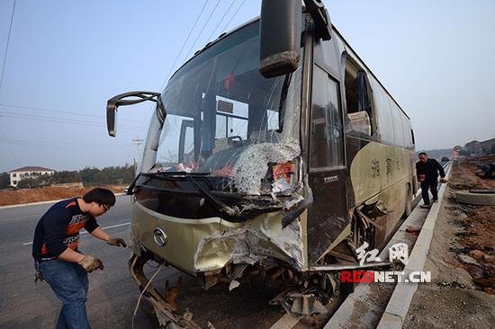 “我正隔着走道和对面一位去往湘阴游玩的人聊天,跟她介绍好吃好玩的。”刘惠群坐在中巴车右侧的第二排,她称中巴车正在右车道行使上坡,“只见对面一台红色小车‘啪’得冲过来。”刘惠群称,中巴车司机急忙向右猛打方向盘,冲向路肩,再突然往左转停下。“车子右边陷到路面下了,左边留在马路上。”猛烈的撞击让刘惠群从座位上飞出,头部朝下摔到了中巴车上客的台阶上,导致腰部四根骨头骨折。“邻座一名男乘客牙齿被磕断了,还有人被撞破头、流着血。”刘惠群称。