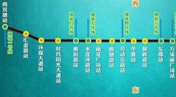 地铁5号线呈南北走向,主要沿万家丽路行进,线路全长35公里,共设26个车站。其中一期工程为时代阳光大道站至蟠龙路站,全长22.5公里,设车站18座,均为地下站,工程概算总投资169.57亿元,计划2020年建成开通。