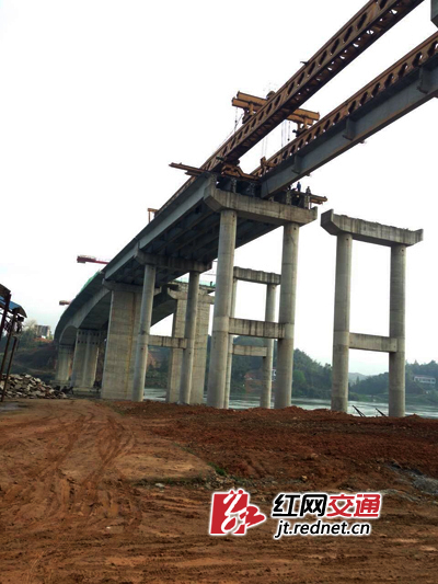 常安高速第二合同段资江大桥位于益阳市武潭镇,全桥长480m。大桥上部结构为装配式预应力混凝土连续T梁+连续钢构,下部结构采用柱式墩,柱式、肋式桥台,桩基础。资江大桥右幅的贯通,缩短了资江南北的武潭镇与马迹塘镇间运输距离,为后续路面施工节约大量成本和施工时间。