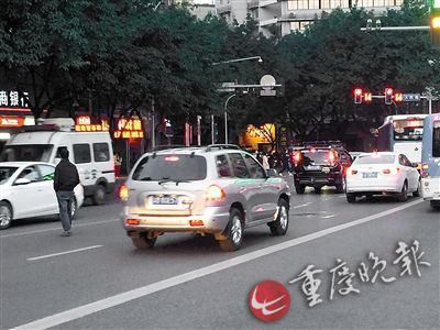 重庆晚报记者刚到路口1分钟,就看到12个行人横穿公路,许多经行此处的车辆司机不得不鸣笛示意,甚至在行人的脚边上踩急刹。