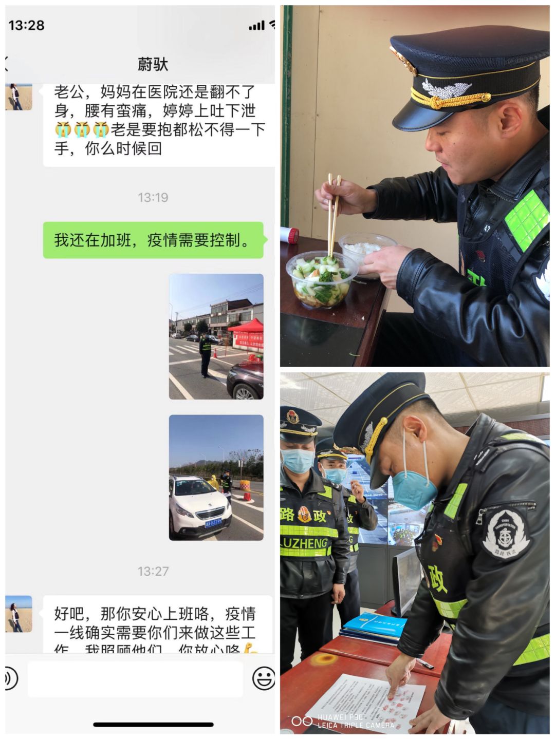2月23日,王力同志已连续值守了八天,值守晚班后已是夜间12点,在这特殊时期,街道已看不到一个人影,王力同志拖着疲惫的身体骑着电动车准备回家,刚行驶了不到两公里,电动车就熄火打不着,万般无奈下,只能推着电动车走了30多公里才回到家中。回家已是凌晨4点多了,想到第二天还要继续值守,自己的电动车又不合时宜的坏了,他本想请假,但想到现在单位人员缺少,不想给单位造成困扰,在这种情况下,他只休息了4个小时,早上9点就出门,找遍了白箬铺镇的大街小巷,终于找到修车店,当车修好时,已是下午4点,马上就到接班的时间点了,只能在路边小铺买了泡面,又踏上去疫情防控值守点的道路。