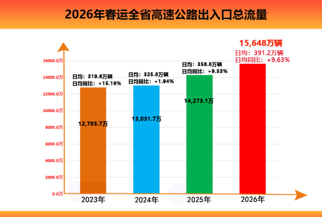 (春运期间全省高速公路出入口总流量对比。通讯员供图)